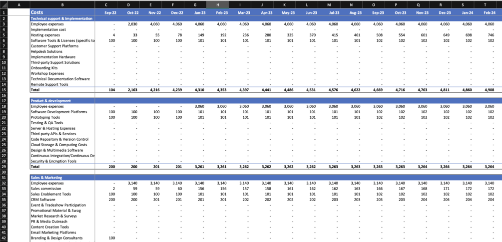 B2B SaaS Financial Planning Template for Excel and Google sheets